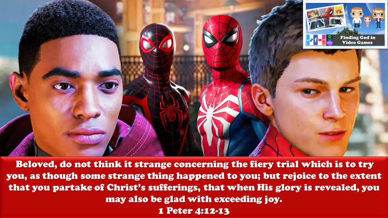 I hope this encourages you today in whatever “neighborhood” you find yourself serving the Lord from today… the devotion that we demonstrate to serve the Lord and the destiny we have each been called to will many times feel like it is bringing even more adversity into our lives than if we had chosen to simply ignore that “spider bite” and the new responsibilities it is asking of us. That’s because it IS bringing more adversity into our lives, and for every challenge that we overcome, entirely new and more difficult ones will ABSOLUTELY take their place… Paul said we should count on it (2 Timothy 3:12). But let’s not grow weary in our service to Christ (Galatians 6:9-10), even when it seems like every action we take on His behalf only causes the target on our backs to grow in magnitude. The beauty of Spider-Man 2 is that while the villains and obstacles that our heroes have to face are only getting more challenging and dangerous, Peter and Miles are not jumping into this game as rookies nor are they going to face these obstacles alone. They carry what they have learned from their previous adventures into this new game and will only grow stronger as the game progresses. And in His infinite mercy and grace, the Lord will never lead us into battles that He has not already planned and prepared for us through the trials we previously endured… trials that were designed to grow our dependence on Him (1 Peter 5:10) as well as strengthen us for the next step on our journey (James 1:2-4).