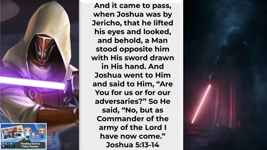 And it came to pass, when Joshua was by Jericho, that he lifted his eyes and looked, and behold, a Man stood opposite him with His sword drawn in His hand. And Joshua went to Him and said to Him, “Are You for us or for our adversaries?” So He said, “No, but as Commander of the army of the Lord I have now come.” Joshua 5:13-14