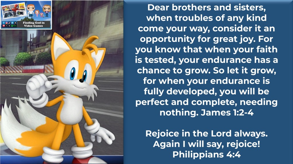 Team Sonic is frequently pressed into service fighting one exhausting battle after another with the fate of the entire planet on the line, but if you were talking to Tails you would never know it. His consistently positive and cheerful attitude keeps his entire team motivated and encouraged even when they are facing incredibly uncertain times and fighting the most dangerous of opponents. Tails isn’t oblivious to the peril they are in, he just refuses to allow it to change who he is or affect his worldview. His attitude is more than simply blind optimism, toxic positivity, or a stubborn denial to acknowledge the reality of the situation they are in… he has simply made the decision to choose joy in every circumstance that he faces