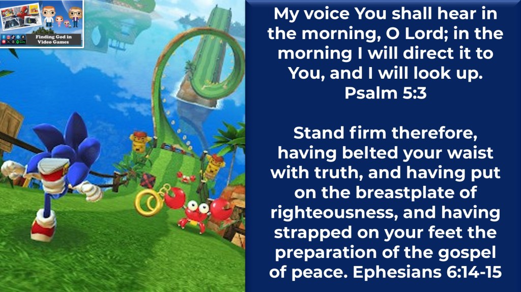 There will always be portions of our day that feel a lot like one of those infamous Sonic loops, and if we don’t hit the ground with momentum at the beginning of our day we will struggle when the going gets tough. How we choose to start today’s race determines the velocity we will have when we face these obstacles, so before we start scanning the news, checking emails, or scrolling through our social media channels let’s give the Lord an opportunity to speak peace, love, and life into our hearts FIRST by connecting with Him in prayer and Scriptural reading. Today WILL have some challenges that will attempt to flip our world upside down… but if we lace up our boots in preparation before the battle starts we can have confidence He will direct all our steps.