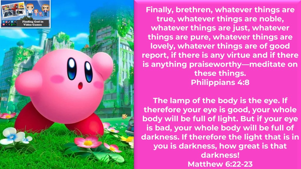 Kirby is one of the most identifiable characters in all of gaming, but it is his very unique method of learning new skills in his games that makes him truly stand out… he consumes an ability and then becomes capable of using that power. As Kirby literally demonstrates the axiom “we are what we eat”, he must intentionally choose what he absorbs based on what capabilities he wants to possess and utilize. If his upcoming mission benefits from the ability to wield a sword, he must seek out and “consume” that skill so he can use it later in battle… and if he doesn’t take time to absorb the most beneficial things, he can’t access them when he needs them the most. If Kirby only eats useless items, he will enter these battles unarmed and unprepared.