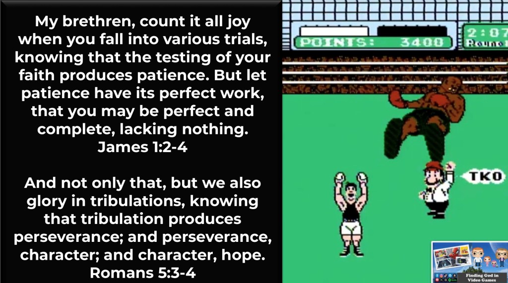 When I think of trials and tribulations, joy isn’t usually the first word that comes to my mind… but much like the list of opponents we had to conquer on our path to that Tyson showdown, each battle we face in life is used by the Lord to grow specific skills in us as well as develop the patience that we will need in the larger battles ahead of us. And if we are willing to accept and embrace these moments that He is using to teach us and help us grow, these lessons will become memorized patterns of behavior that we’ll never forget. So let’s find the joy in our journey today… not because of the test itself, but because these tests will become our testimony.