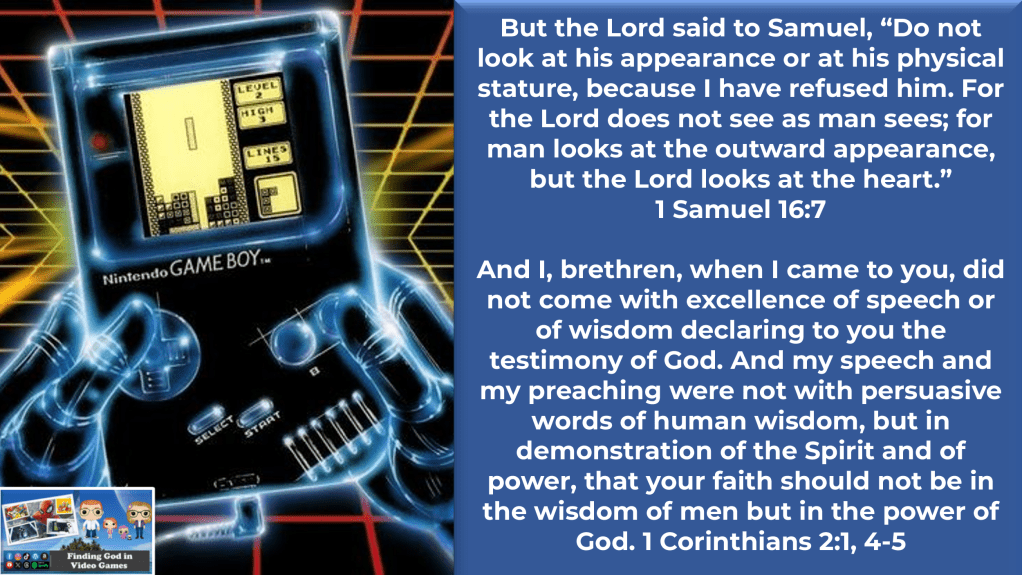 On the surface, Tetris didn’t look like a title that would carry an entirely new platform, but those little monochrome blocks were exactly what the world needed… and similarly, the Lord doesn’t select us for our missions in life based on what others see on the outside. He looks at our heart, choosing to use these simple vessels of flesh and blood to carry His message with the power that comes from His Spirit. Let’s not allow our perceived limitations to talk us out of what we have been sent to do. He designed us for this.