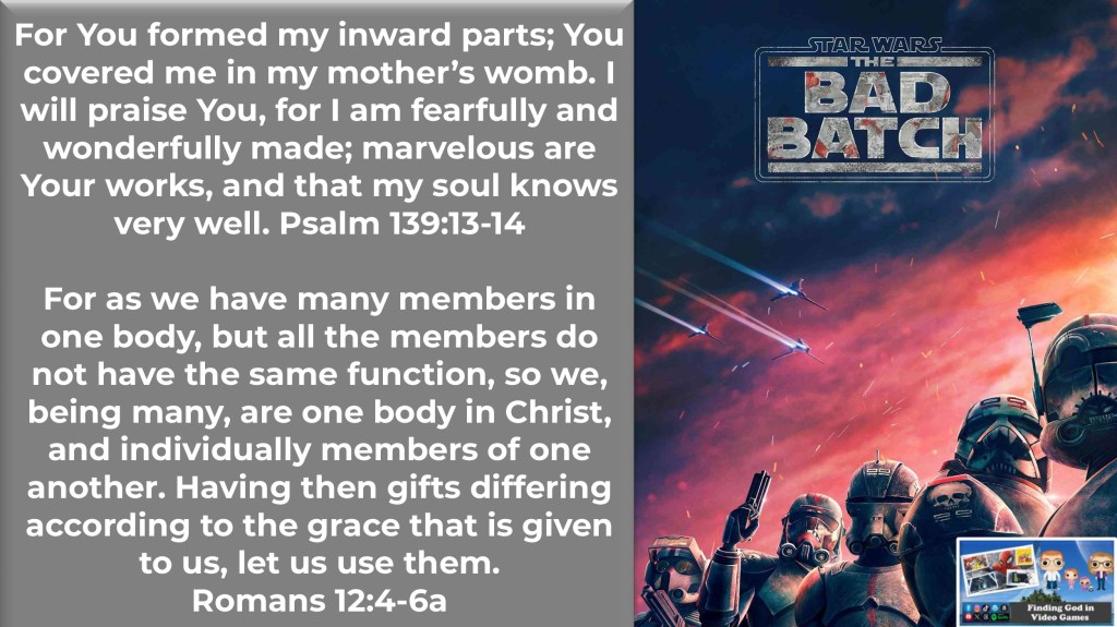 One of my favorite spin-offs to come from the animated Star Wars: Clone Wars series is the “Bad Batch”… a group of “failed” clones who were deemed unfit to serve alongside the rest of the clone troopers due to their perceived imperfections. Originally considered defective, each member of Clone Force 99 revealed that while they weren’t designed exactly like their clone brethren, they were uniquely enhanced in ways that made them the perfect choice to take on and complete specific missions that only they could accomplish. From elite sniping skills to an unmatched technical intellect, each seemingly inferior clone’s limitations were actually their superpowers… and when they combined them together into one unit they were unstoppable.