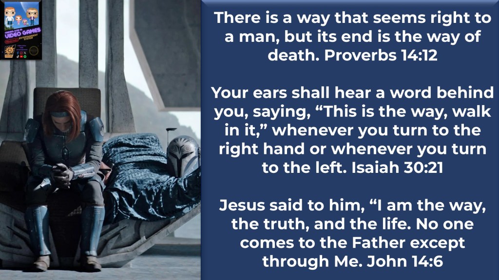 Many of the most memorable characters in the Star Wars franchise are introduced to us with a problematic background painted in shades of gray… characters such as Bo-Katan Kryze, a Mandalorian warrior who errantly joined a rogue faction known as the “Death Watch” to pursue her goals of a stronger, united Mandalore. While she had positive intentions, she had chosen the wrong allies that led her down a very dark and compromising path to achieve them. Possessing a few similar goals didn’t mean they shared her core values or convictions, and they ultimately betrayed both her and their cause. Following her own way only led to the very outcome she was trying to prevent… fulfilling her destiny meant she had to find and follow the one true “way”.