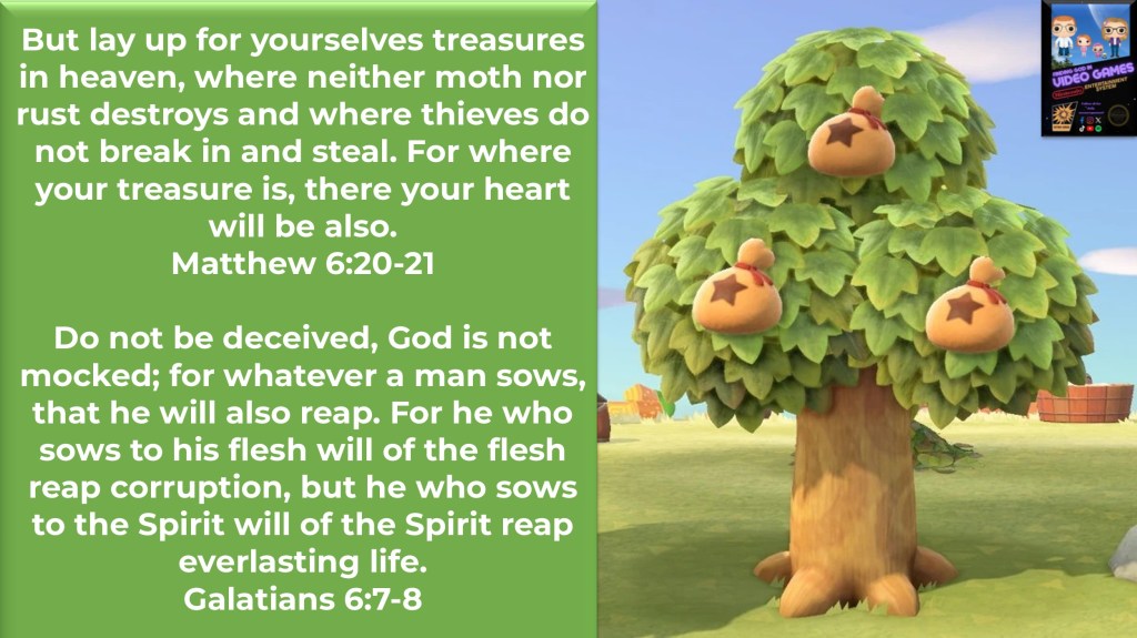 The act of “planting” in most games follows a pretty predictable and linear path… if I plant an apple seed into the ground, typically one single apple tree will grow. But Animal Crossing: New Horizons provides a special opportunity for our planting to create exponential growth as long as I am willing to make a short-term sacrifice for a long-term gain. There are some unique spots in the ground where I can plant some of my hard-earned in-game currency and see a “money tree” pop into existence on a later date. But in order to receive this 3x bonus on my investment, I first must be willing to bury my “bells” into the ground in faith that this temporary investment will end up paying off for me in the future.