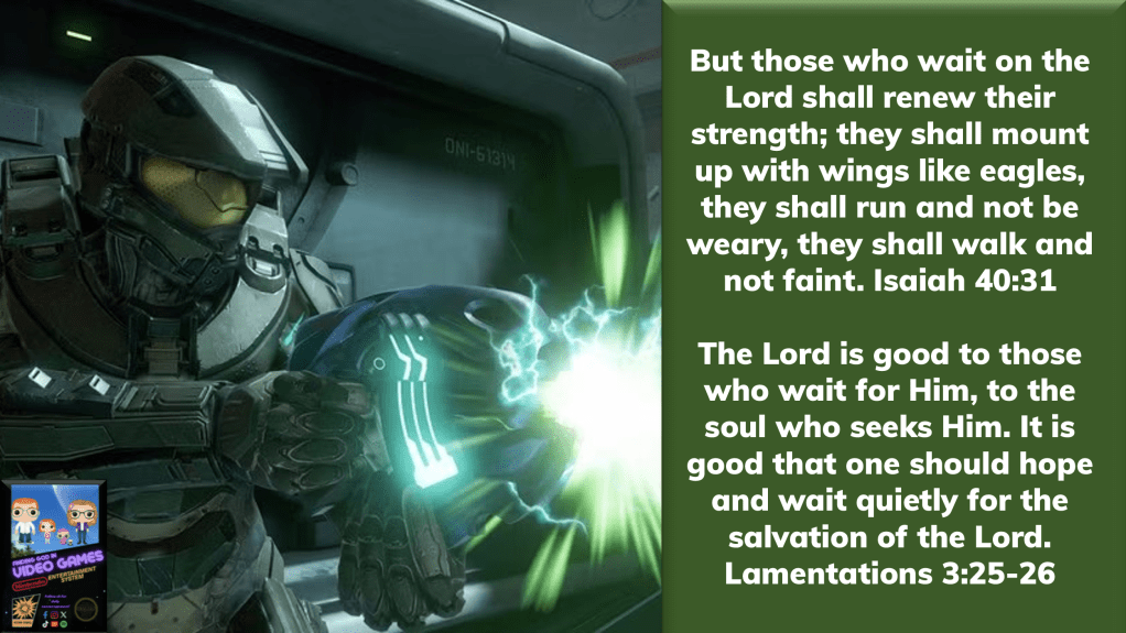 Waiting for the Lord to act on my prayers is not always easy, but trying to take matters into my own hands rather than patiently resting in faith is about as useful as rapidly firing a plasma pistol at an incoming Banshee. As excruciating as it can be to wait, it is the combination of our faith in His promises as well as our patience with His timing that results in us seeing the largest mountains in our lives move. Let’s endure our current waiting season in life with the confidence of a Spartan wielding a fully charged plasma pistol… the Lord is never too early or too late, and as we stand firm in our faith we’ll find that we aren’t just sitting and waiting for Him to act. We are charging up.