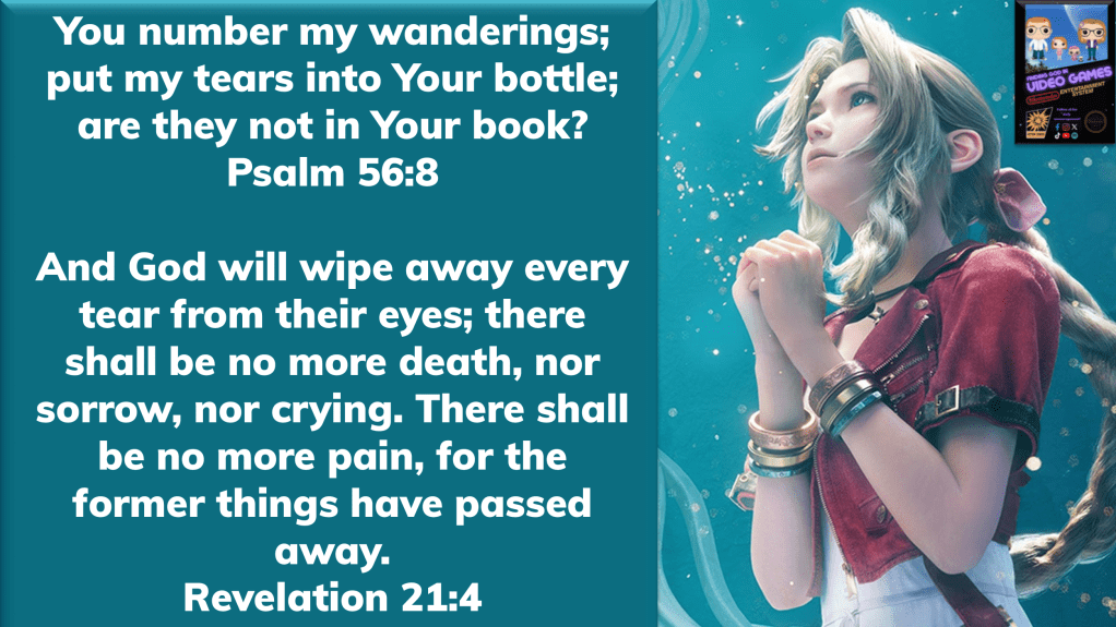 There are a handful of moments in gaming history that are forever etched in my memory for being undeniably shocking and painfully unforgettable… and (spoiler alert) the sudden ending of Aerith’s journey at the conclusion of disc one in Final Fantasy VII stands as one of the most prominent. While this is hardly the first time (or the last time) that I experienced a gaming character “moving on”, this one hit especially hard because of how unnecessary it felt at the time. But despite my disappointment at this unwanted plot twist, there were still two more discs left to complete… while this action couldn’t be prevented or undone, after respectfully mourning her loss it was time for me to move forward in hope and finish the story.