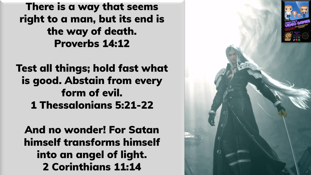 There may not be a more iconic villain in all of gaming than Sephiroth, the antagonist of Final Fantasy VII. Interestingly enough, he was once a fellow soldier… an ally who transformed from appearing to be an angel of light into a sinister agent of darkness. What made Sephiroth such a dangerous and lethal adversary was not just his strength… he was sincerely convinced that his path was the correct one, and he was willing to go to any length to bring it to pass. But he was deceived… despite how sincerely and thoroughly convicted he was that his way was the only way to cure his planet, he was still sincerely wrong. Sephiroth’s path would only lead to destruction.
