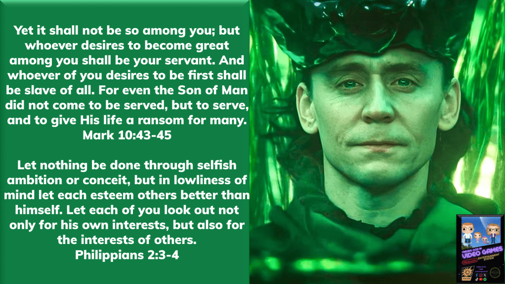 Loki may have undergone the most dramatic transformation in the entire MCU, starting out as a manipulative villain consumed with achieving his “glorious purpose”… a selfish desire to see his happiness achieved at the expense of others. But after realizing the error of his ways and the empty futility of his mission, Loki learned that his “glorious purpose” was not to rule others, but to serve them… and by choosing to offer himself as a sacrifice and place the needs of others above his own dreams and ambitions, Loki unlocked his true potential and finally found the purpose he had been searching for. Crowns that are chased for personal glory are lost as easily as they are found… eternal crowns are exclusively reserved for those who put others above themselves.