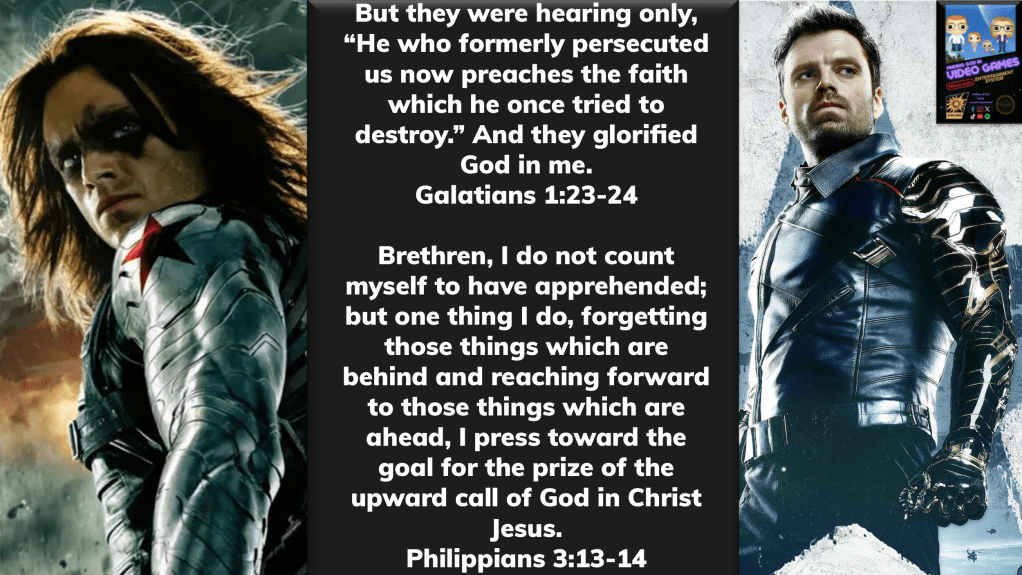 Being “born again” in Christ means that we have become a new creation from the inside out, and that includes the full forgiveness of our past sins that once defined us. We are “Winter Soldiers” no more… and that means we move forward in confidence that He didn’t just deliver us to save us, but He also commissioned us to help reach and save others. Let’s put away the things that led us down paths of regret and shame and start today with a renewed mind that has been set free from our enemy’s brainwashing. The Apostle Paul was once a “Winter Soldier” too… so let’s leave the past behind us, grab hold of His grace with that vibranium arm, and press forward into our calling today.